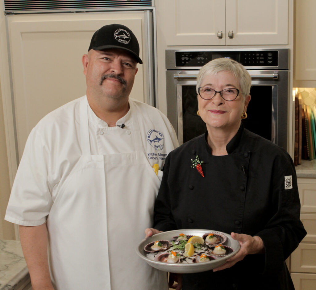 Cathy Thomas Makes Bluewater Grill’s Sashimi Sea Scallops with Roberto Navarro