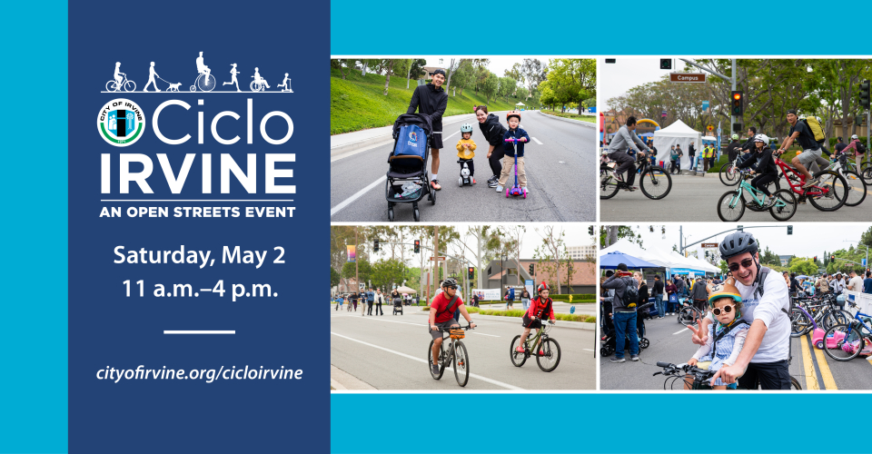 Thursday, March 26, 2026 The City of Irvine is excited to celebrate community, connection, and clean air through its third annual car-free open streets event, CicloIrvine, from 11 a.m. to 4 p.m. Saturday, May 2. Residents, visitors, and businesses are invited to stroll, bike, and roll along a 1.3-mile car-free Read More