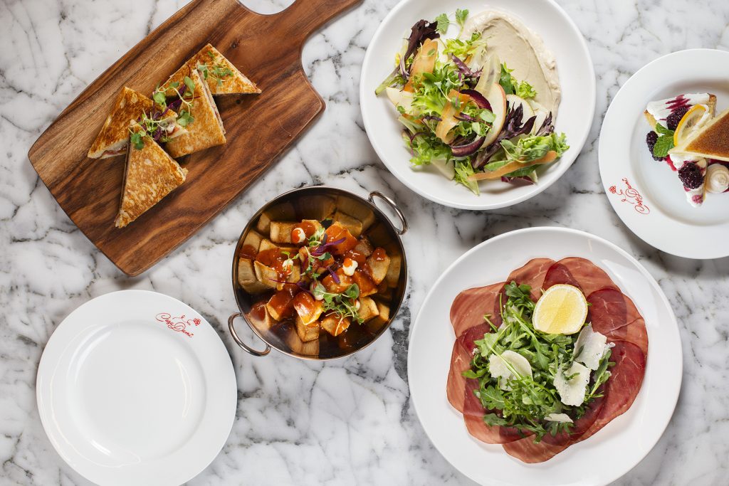 My dining partner Malena Gordon and I began our dinner at CasaDami with a small charcuterie board followed by patatas bravas with garlic aioli, croquetas with ham and Manchego, beef empanadas, and truffle bikini with ham. For dessert: olive oil cake with Meyer lemon, mascarpone crème and blackberry coulis for dessert.