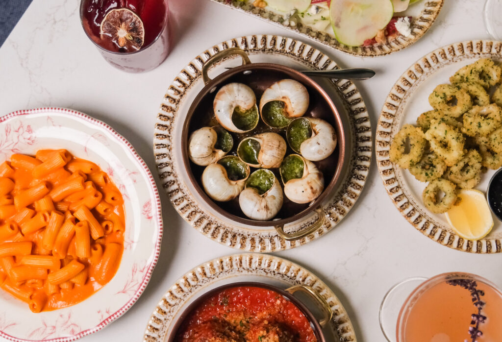 Hayek describes the menu as “coastal Mediterranean,” with offerings like grilled octopus and prawns, lobster spaghetti and spicy rigatoni, beef tartare and barramundi carpaccio—a terrific selection of seafood and steaks, as well as pork, lamb, and poultry. The bar program taps into the Mediterranean theme with clever spins on familiar sips. For example, the vermouth in the martini is infused with za’atar (a wonderful spice blend of oregano, thyme, marjoram, and sumac), while the old fashioned uses house-made date syrup instead of simple syrup. Everything—the food and the drinks—is beautifully presented.