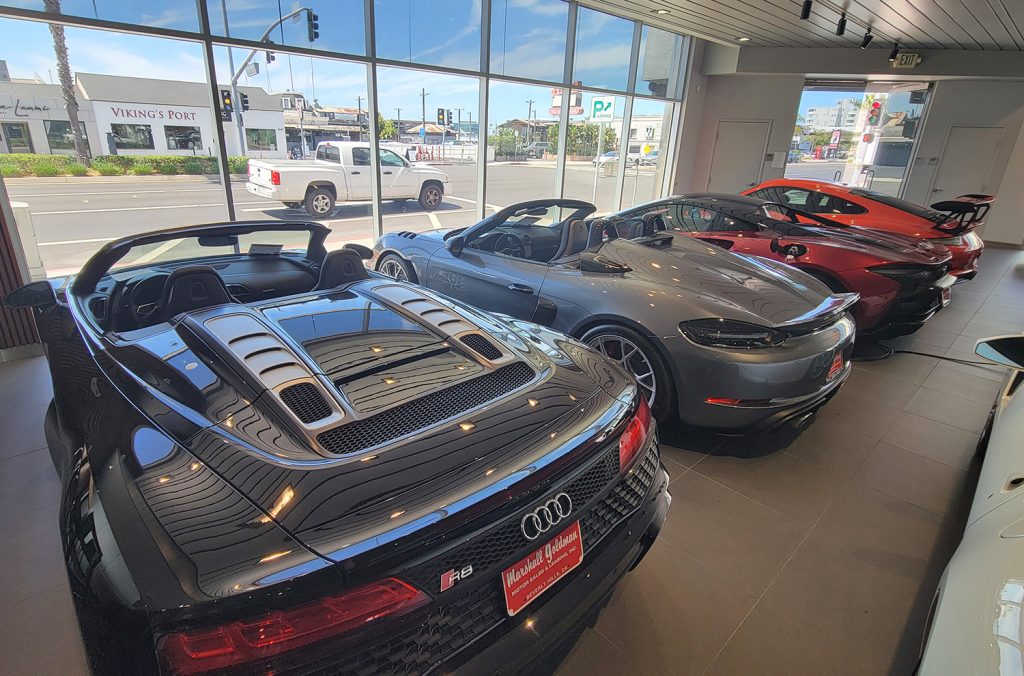 Those are just three of the enviable automobiles on display at the Marshall Goldman dealership in Newport Beach.