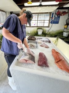 Roy passed away in 1998; now his son, Tom, and Carley’s mom, Terese, own the operation. “He’s pretty much behind the scenes; he’s always out fishing,” Carley shared; and that’s why few customers get to meet Tom, for he usually casts off around 5 a.m., and doesn’t return to offload the day’s catch until 5 or 6 p.m. “My mom ran the operation day to day and has built the market into what it has become for the past 30 years,” Carley said with pride.